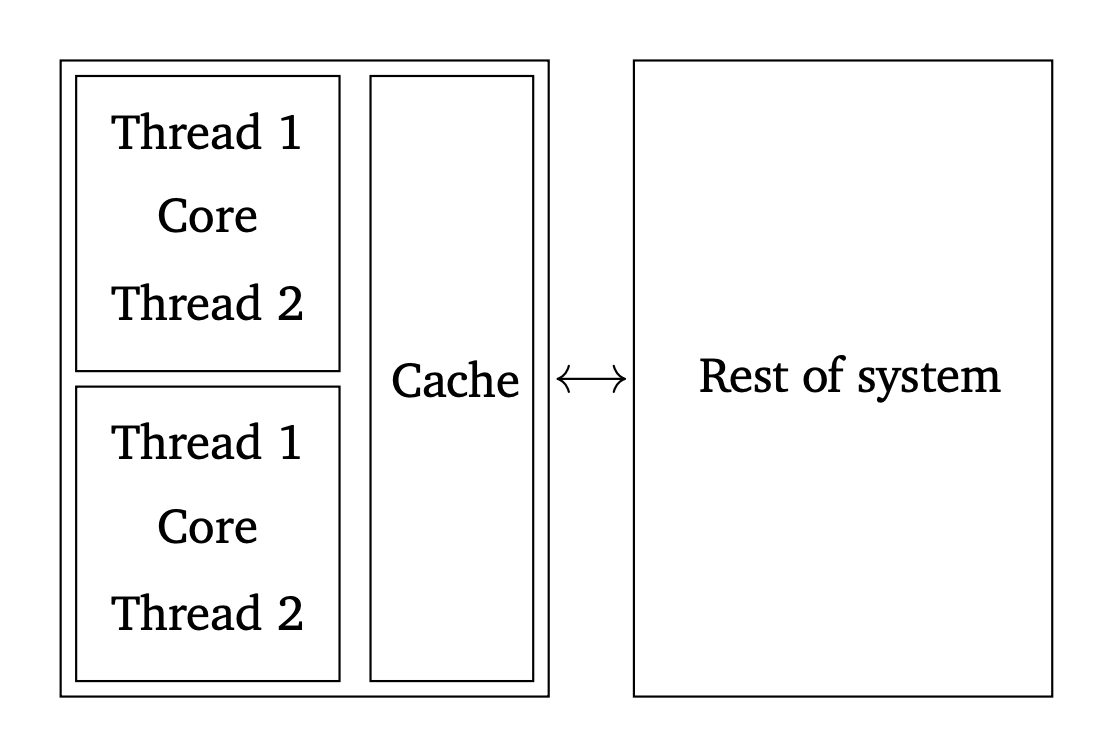 - SMT/HT = “more hardware threads per core”