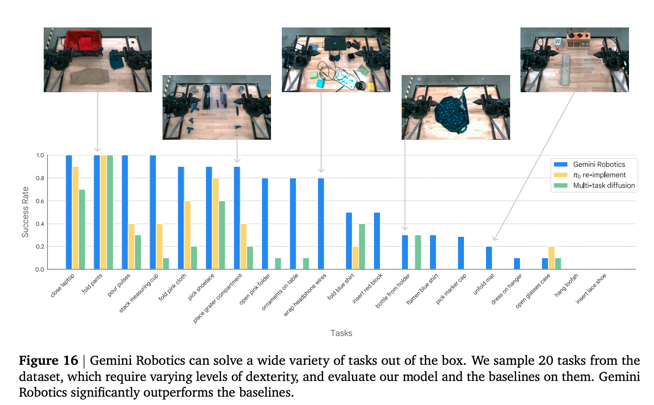 However, as a VLM, there are inherent limitations for robot control, especially for more dexterous tasks, due to the intermediate steps needed to connect the model’s innate embodied reasoning capabilities to robotic actions. In the next section, we will introduce Gemini Robotics, an end-to-end Vision-Language-Action Model that enables more general-purpose and dexterous robot control.