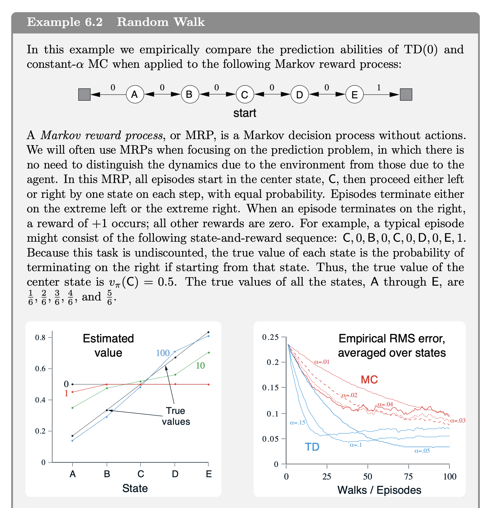 “n! In practice, however, TD methods have usually been found to converge faster than constant MC methods on stochastic tasks”
